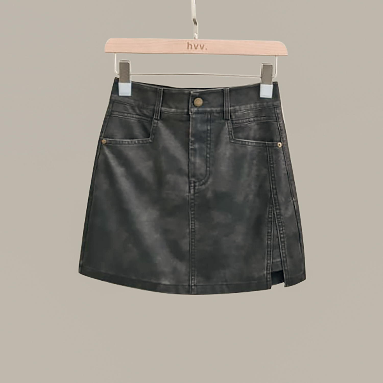 A-line pleather skorts with aged finishing