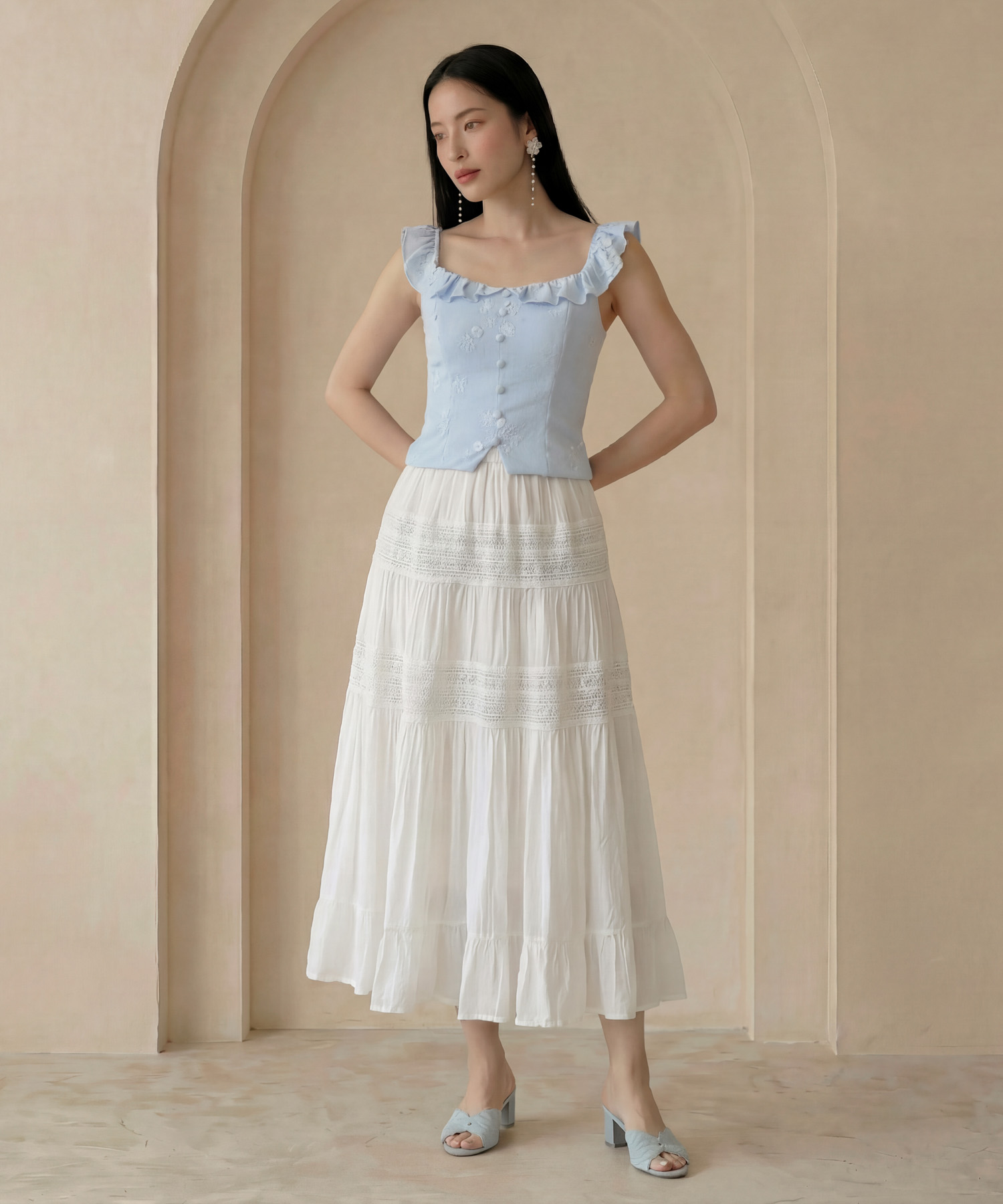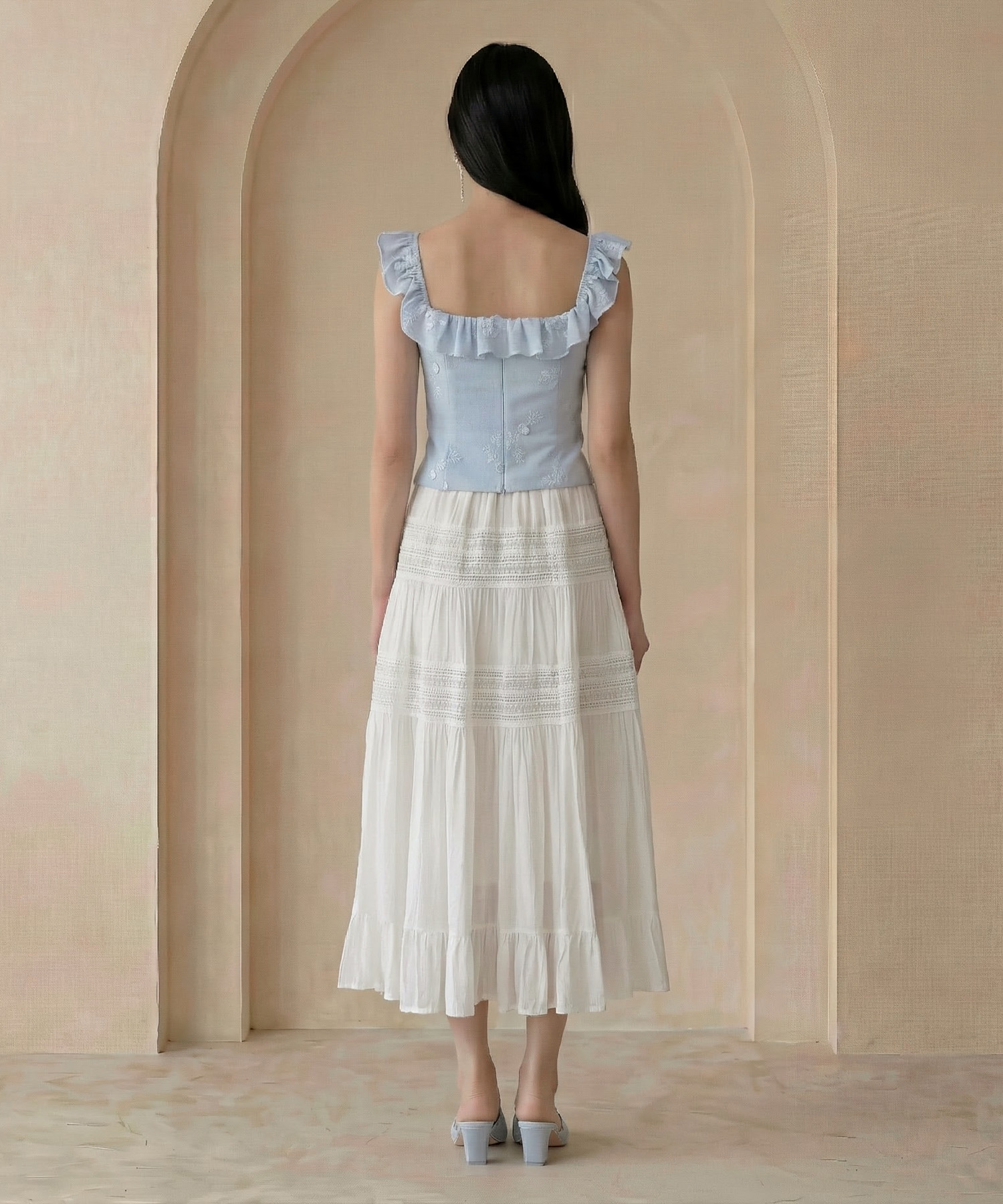 Claudette Tiered Maxi Skirt - White