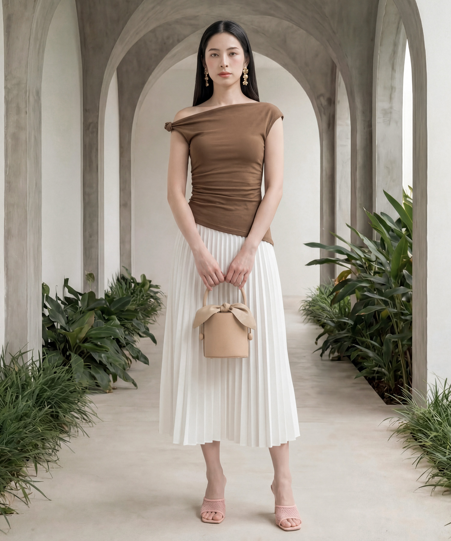 Classic pleated midi skirt
