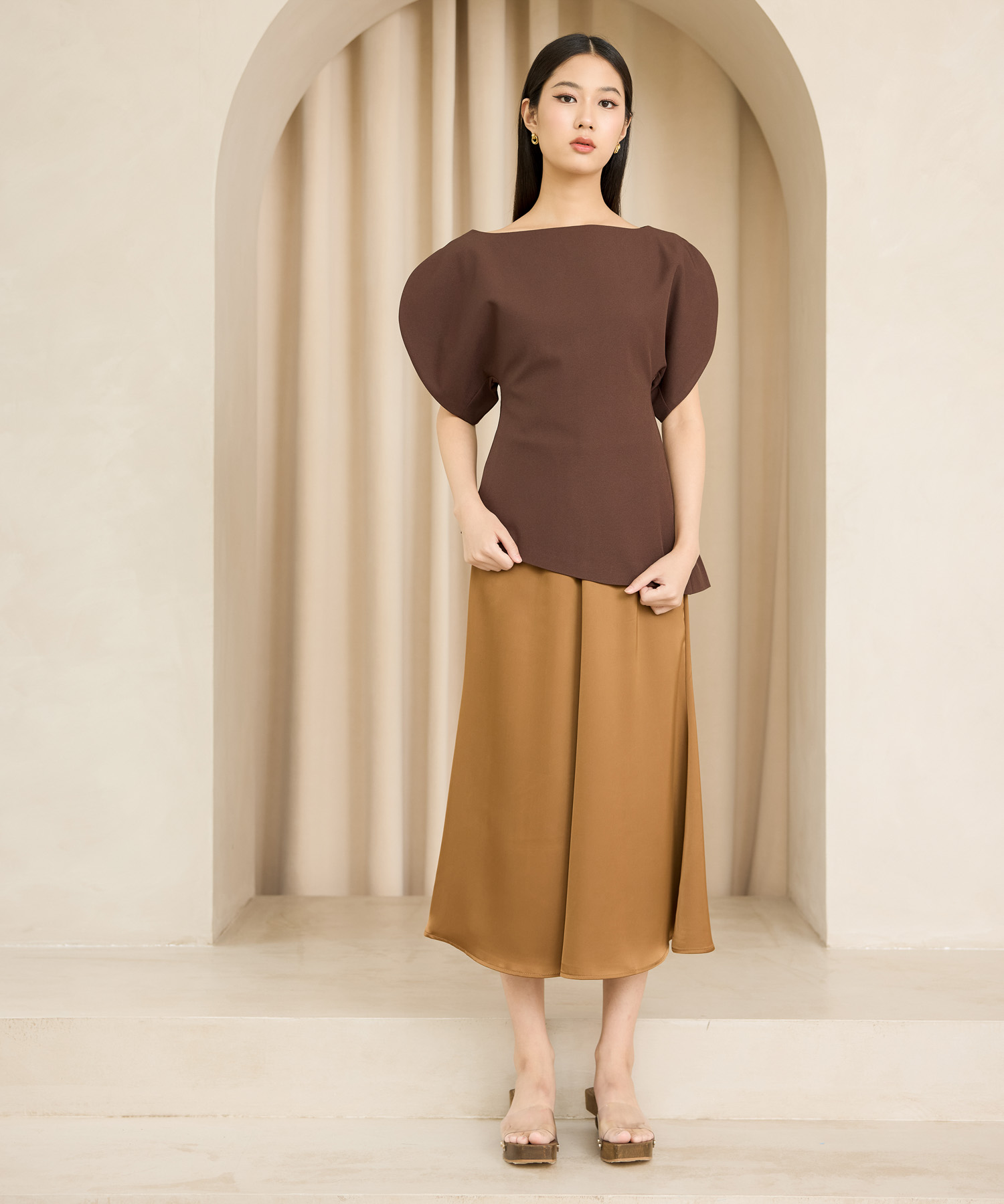 Estee Asymmetrical Blouse - Espresso