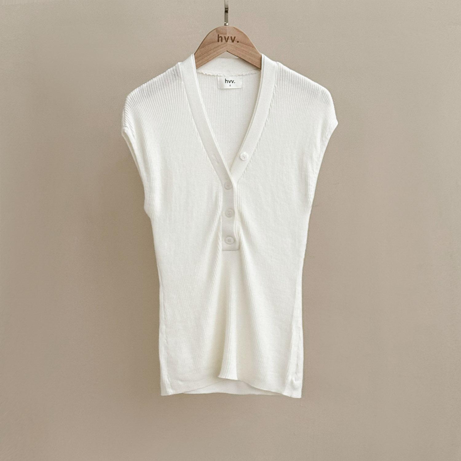 Fiji Knit Button Top - White