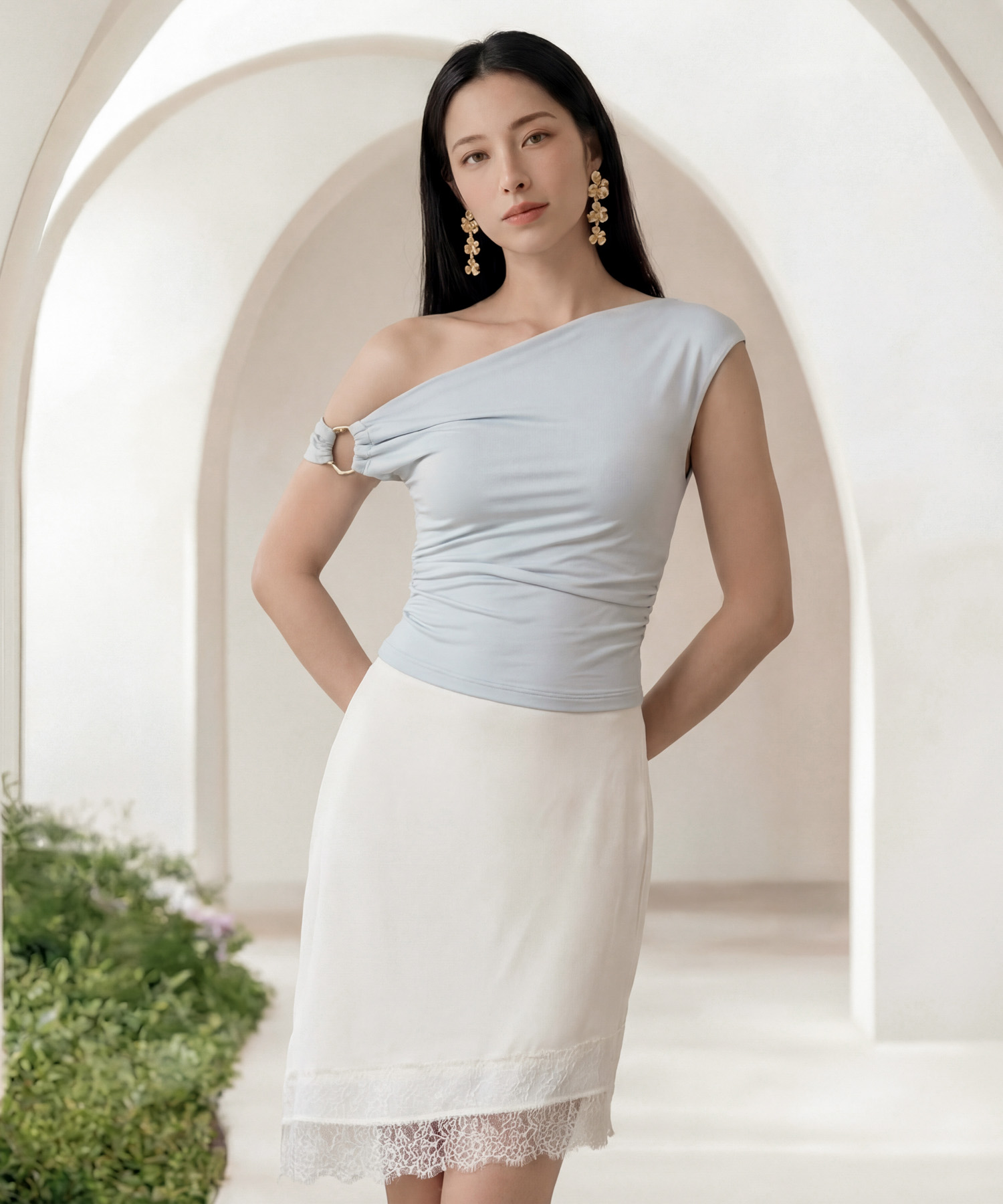 [HVVCNY2026] Amber Ruched Buckle Top - Ice Grey