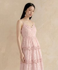Large swiss dot tiered midi dress with lace hemlines