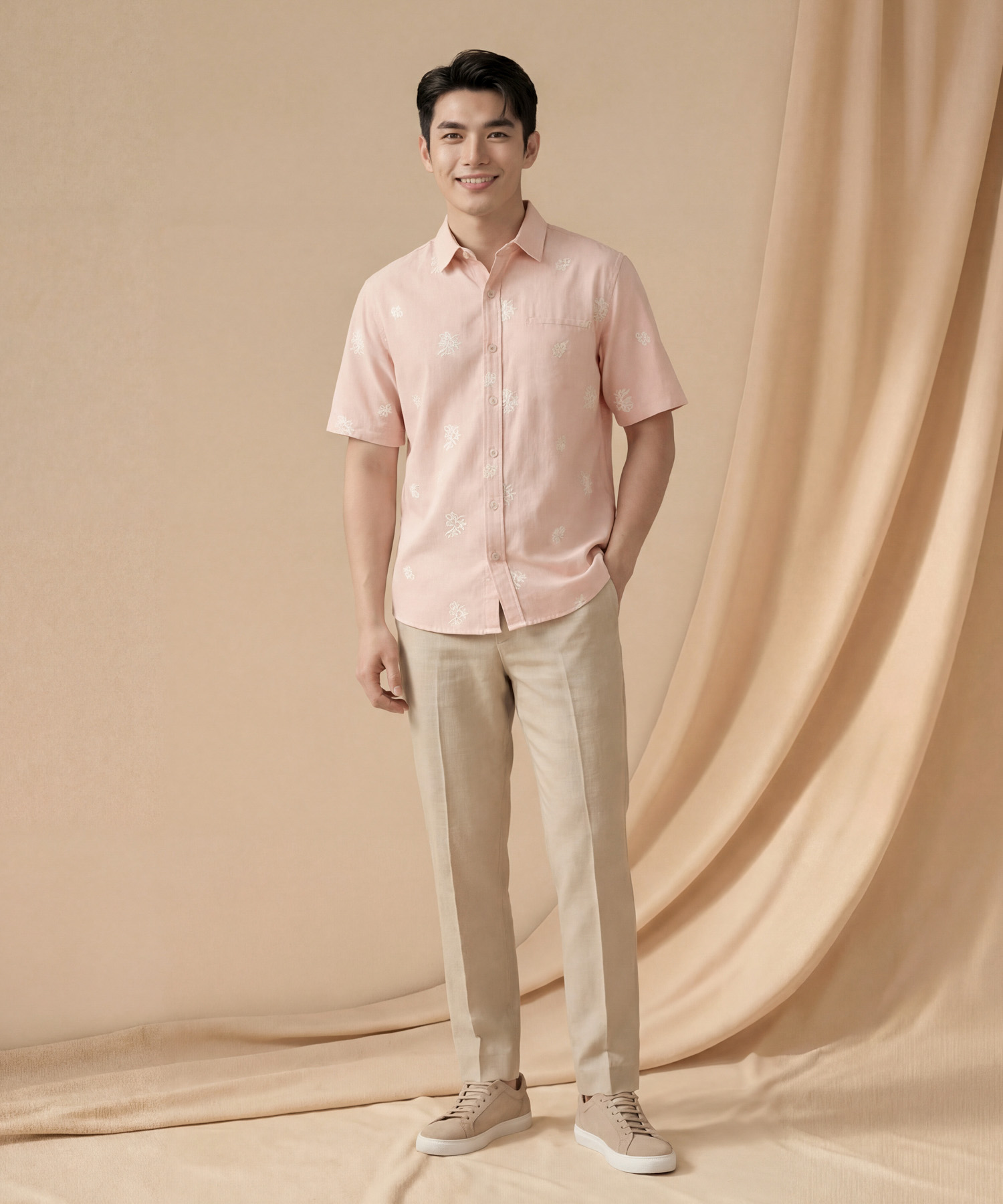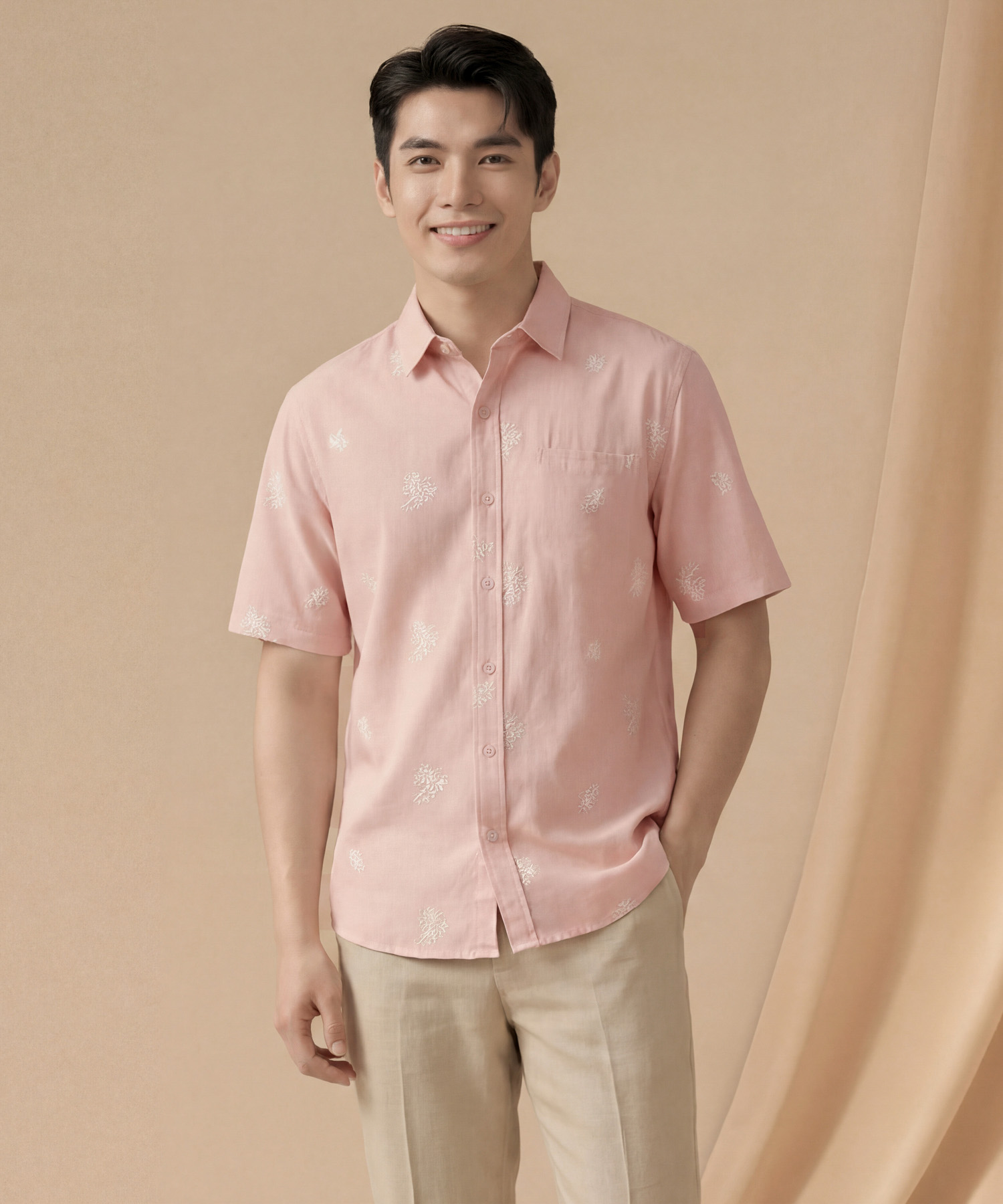 [HVVCNY2026] (MEN) Brooks Embroidered Linen Shirt - Pink