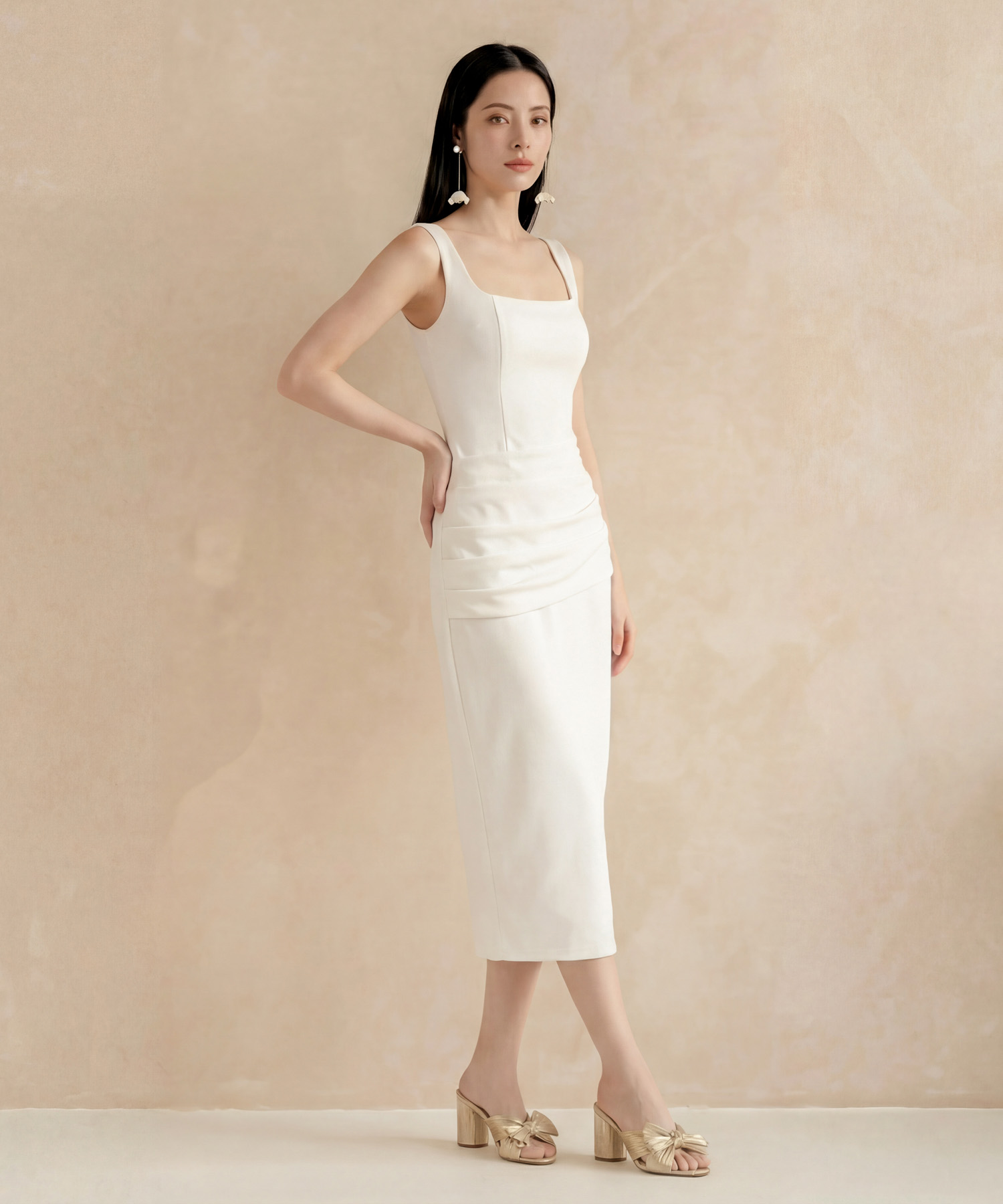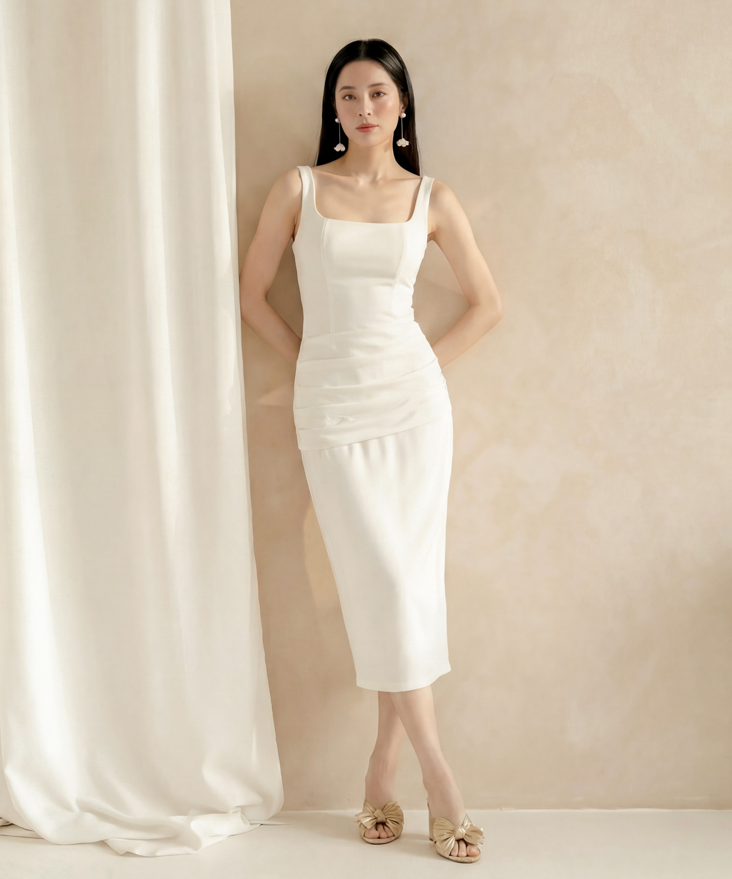 [HVVCNY2026] Solange Buckle Ruched Midi - White