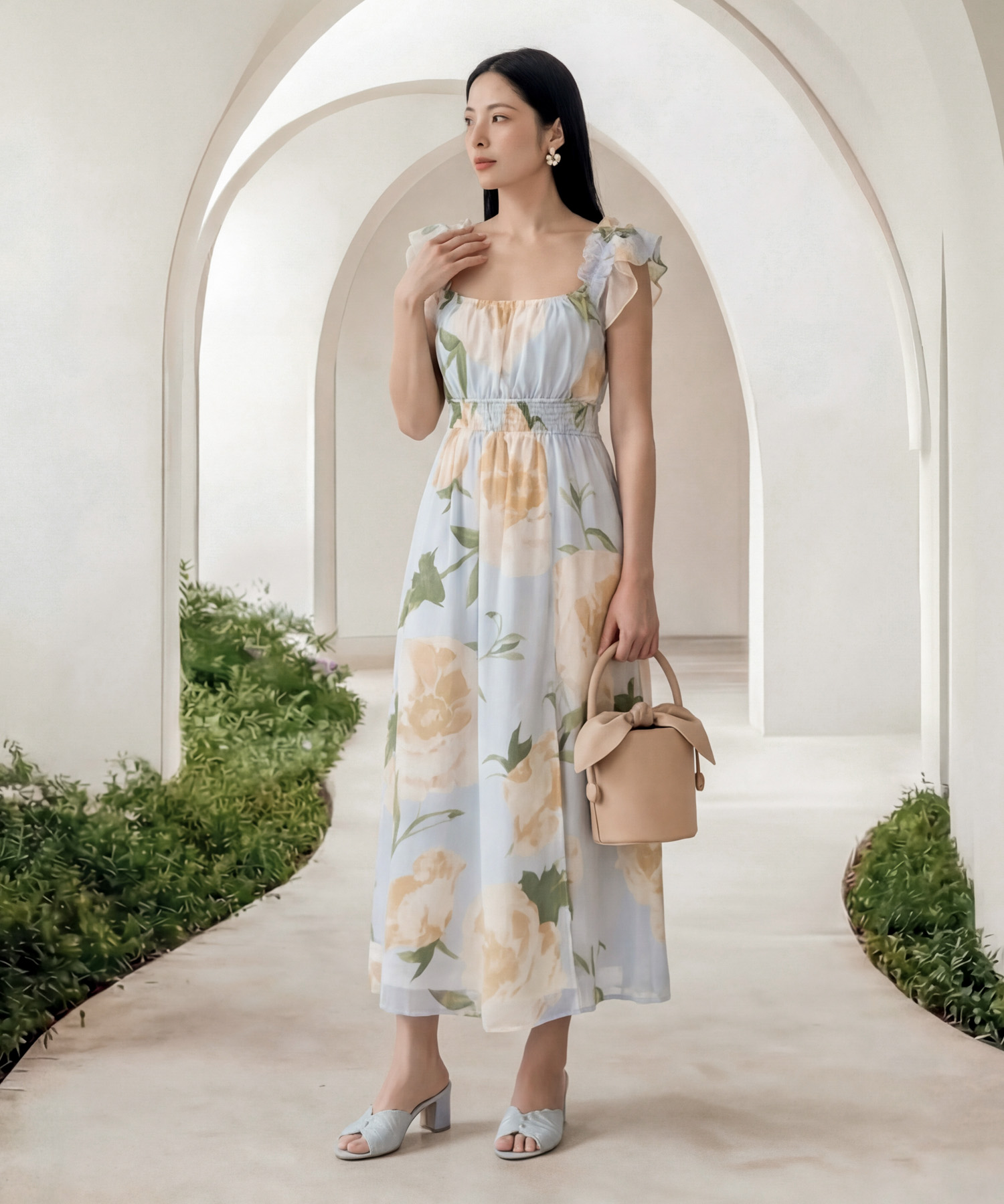 [HVVCNY2026] Spring Ruffle Floral Midi - Yellow