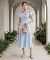 Flutter sleeved midaxi dress with non-removable tie at bust