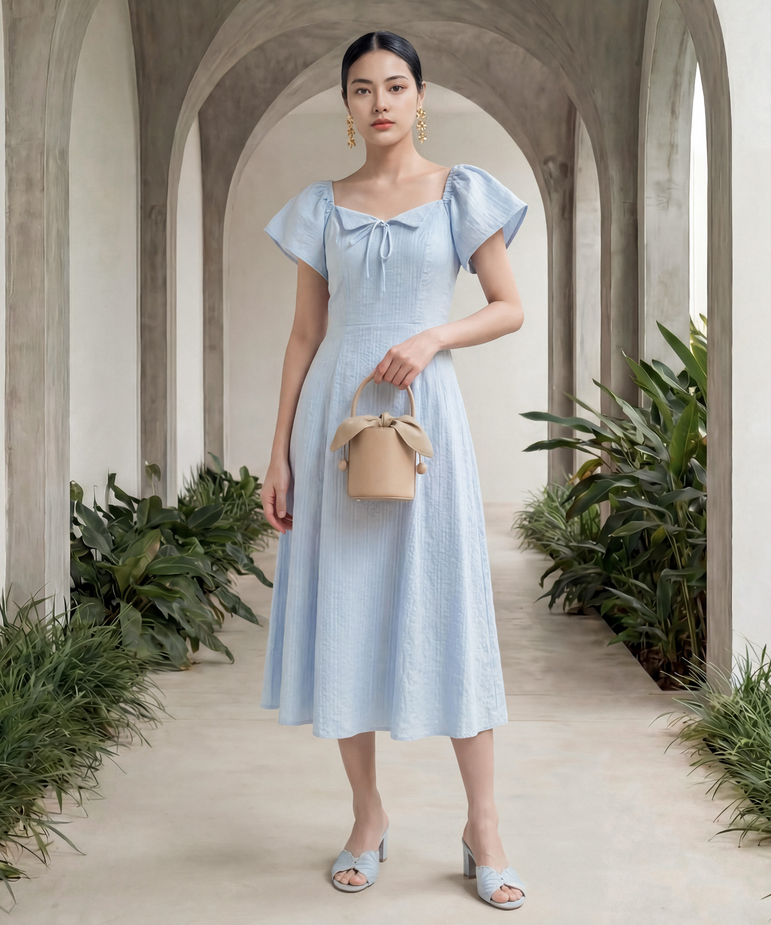 [HVVCNY2026] Vines Flutter Sleeved Midaxi - Powder Blue
