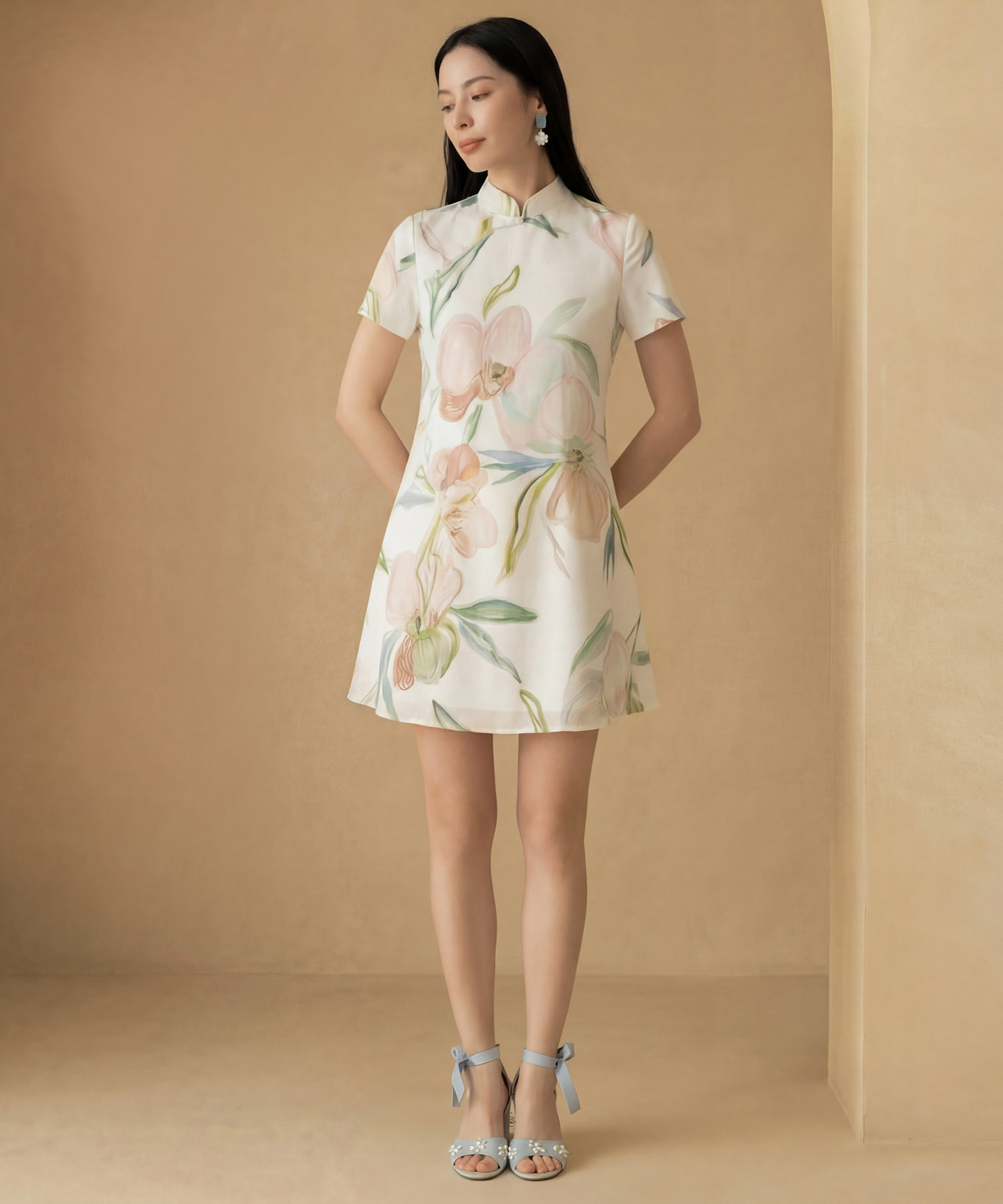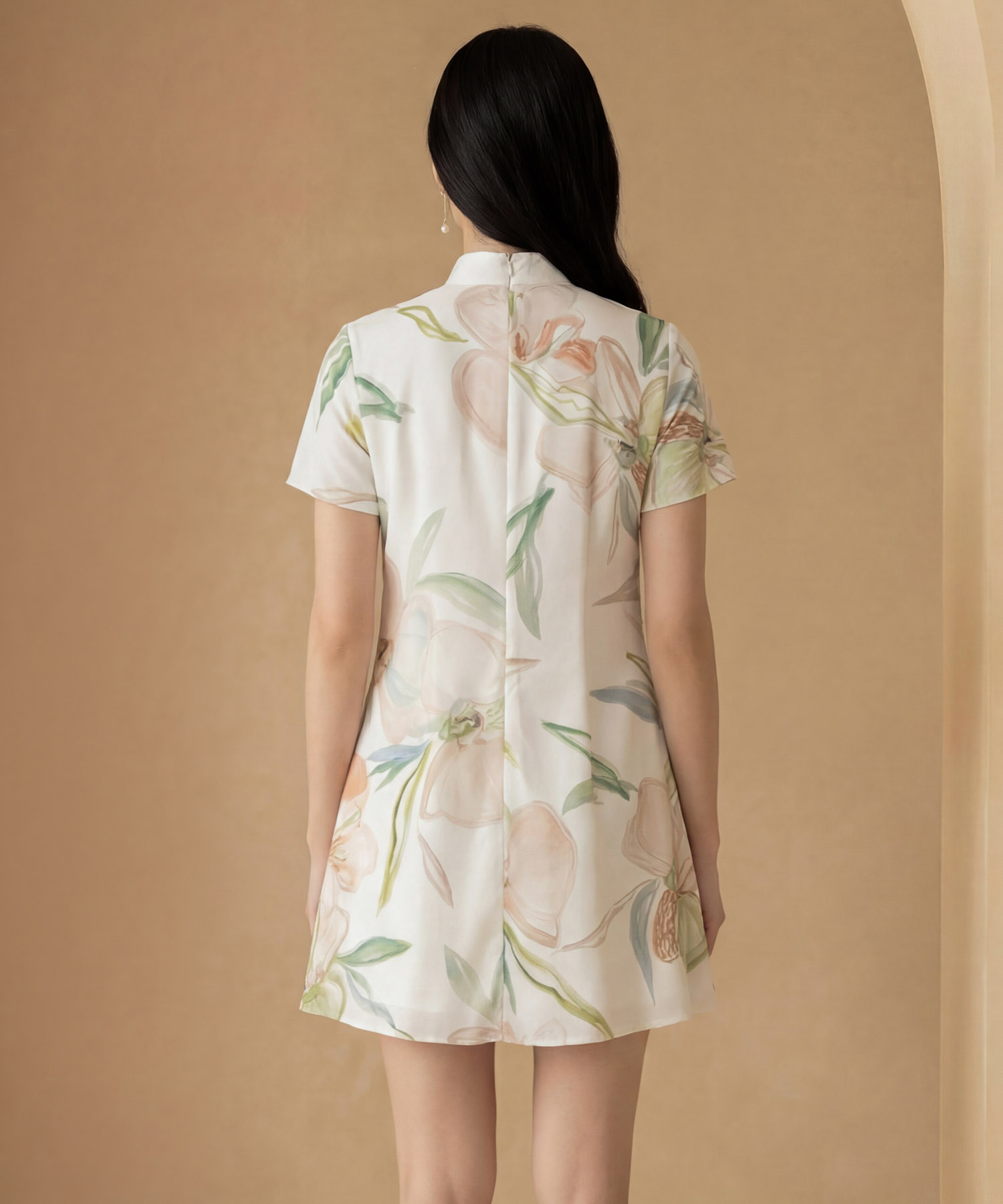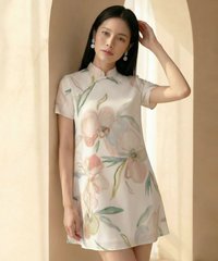 Floral printed flare cheongsam