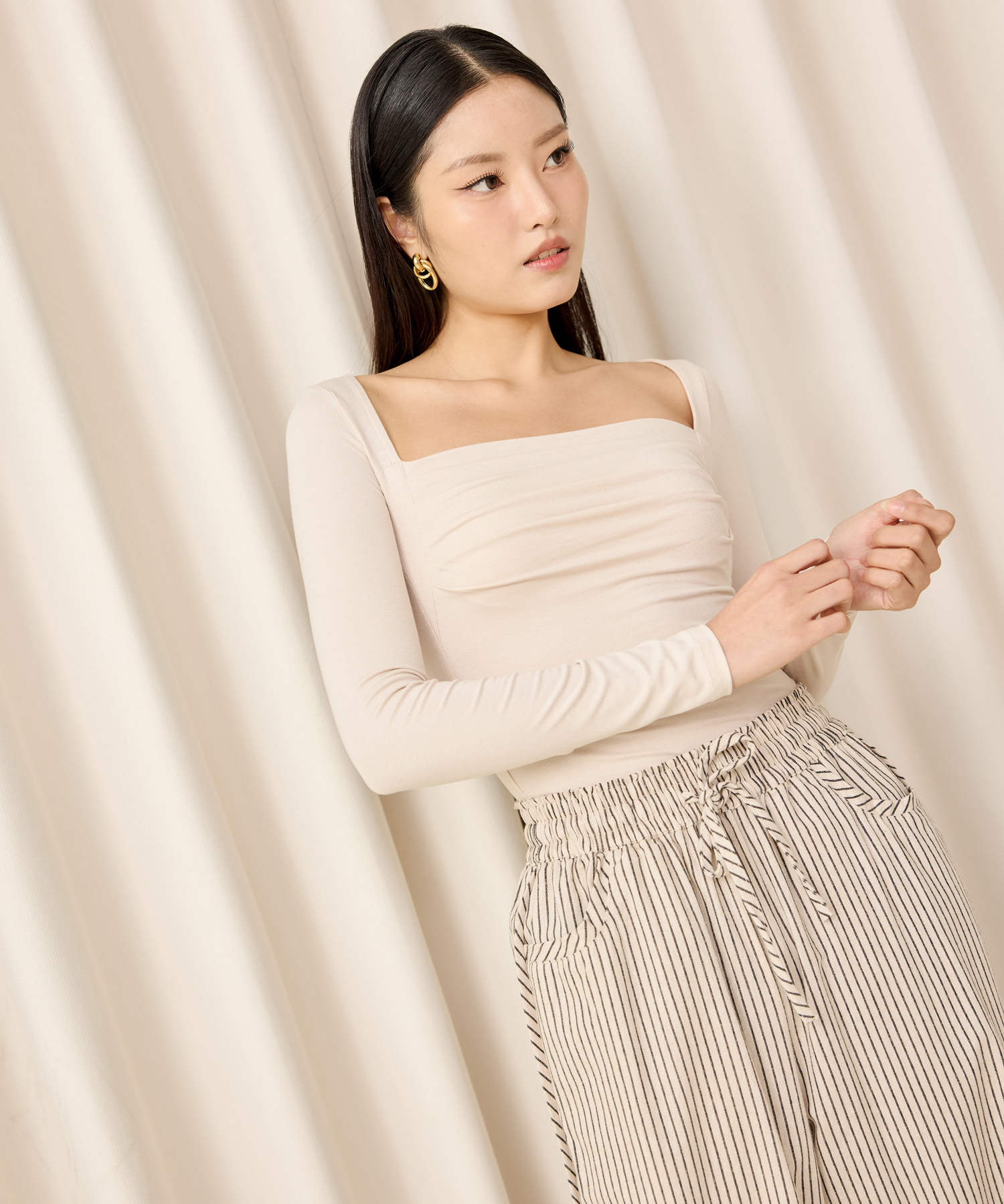 Square neckline ruched top