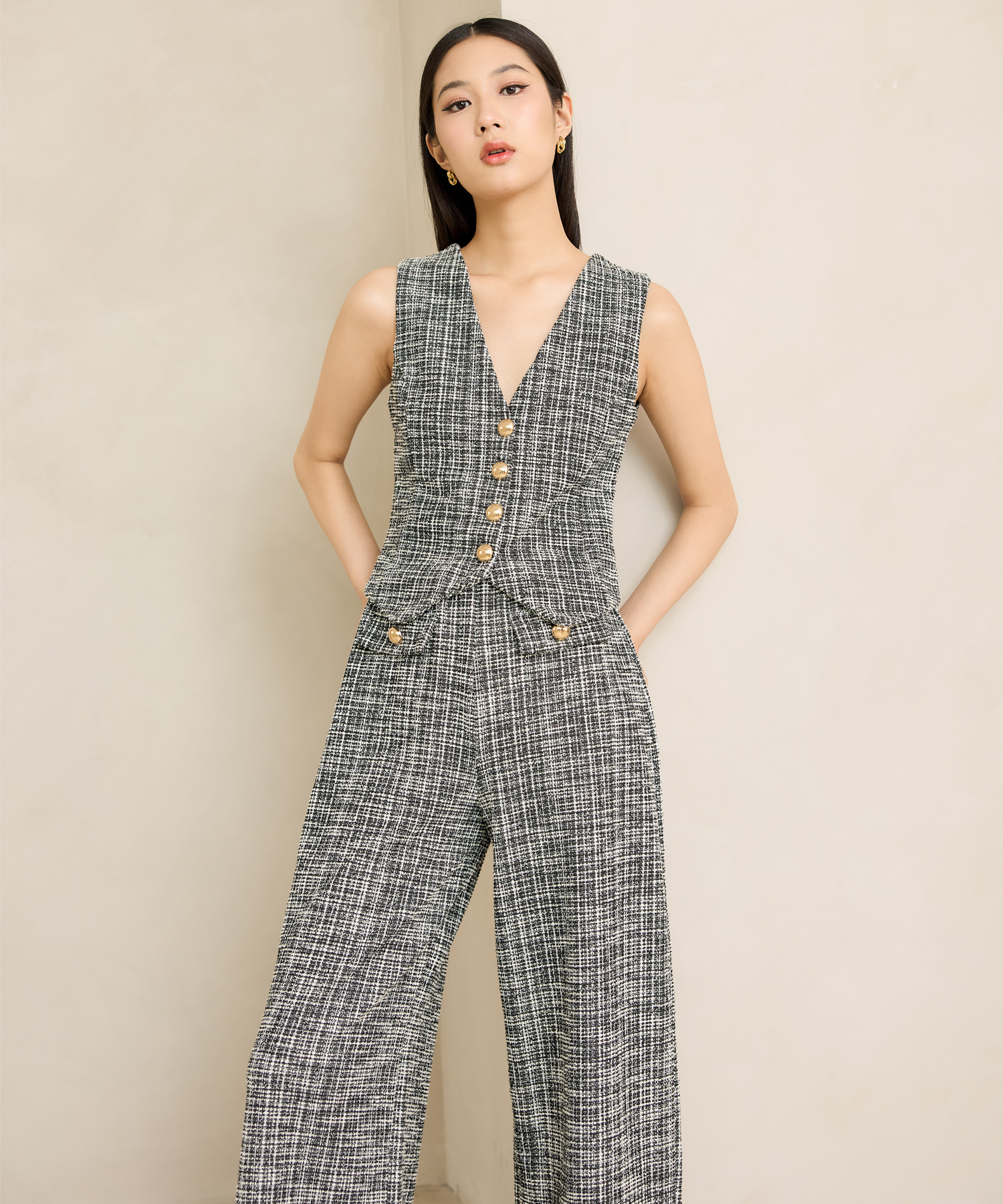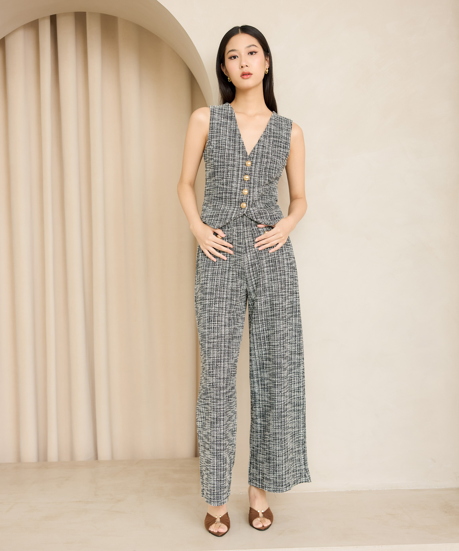 Sleeveless tailored vest top