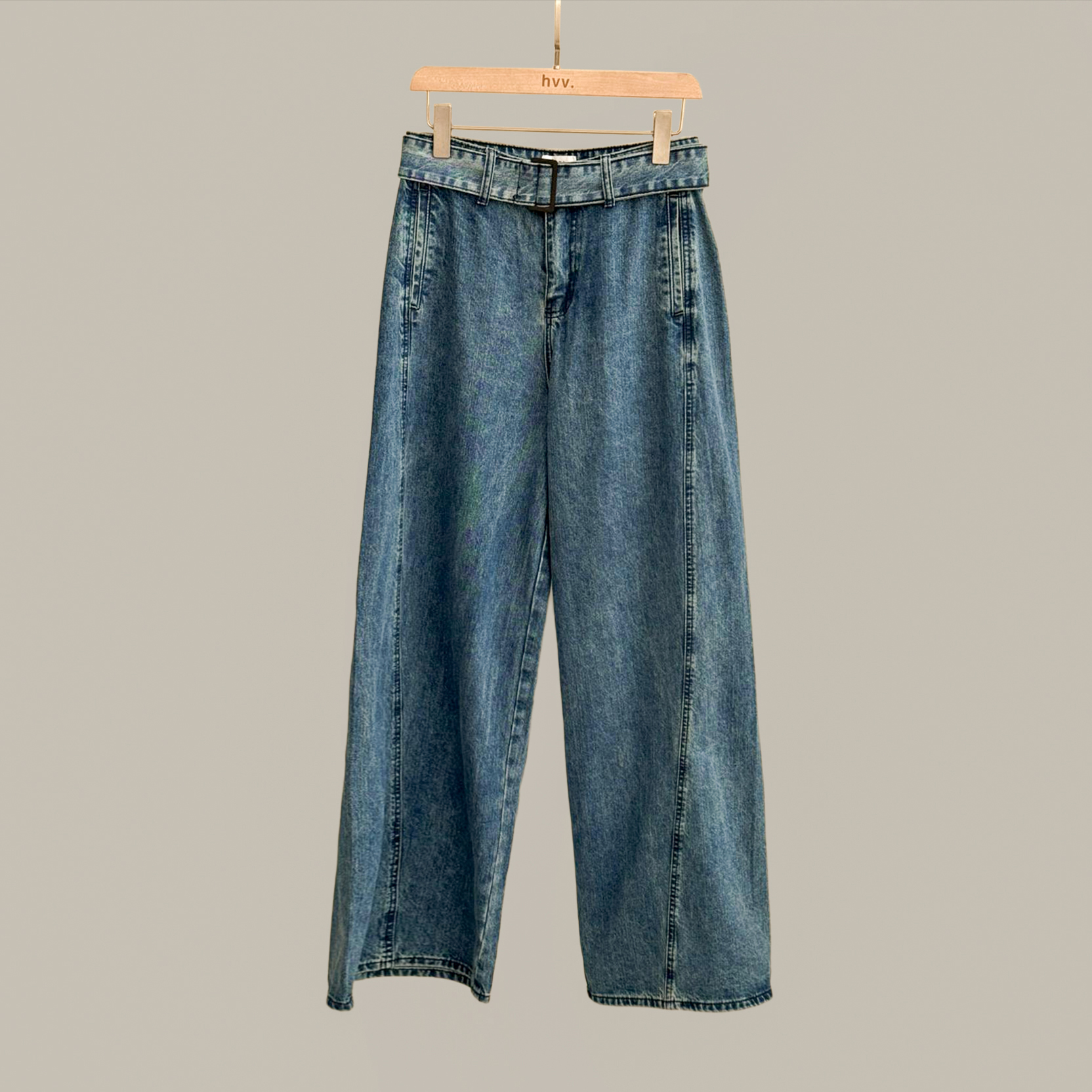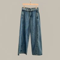 Moto Flared Belted Jeans - Med Wash