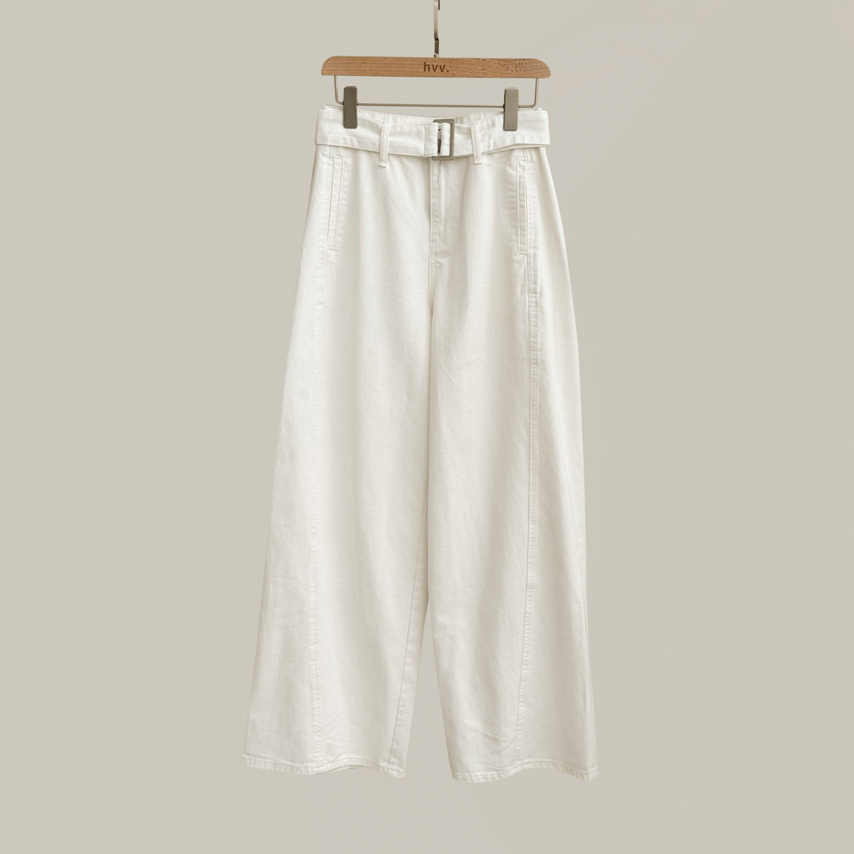 Moto Flared Belted Jeans - White
