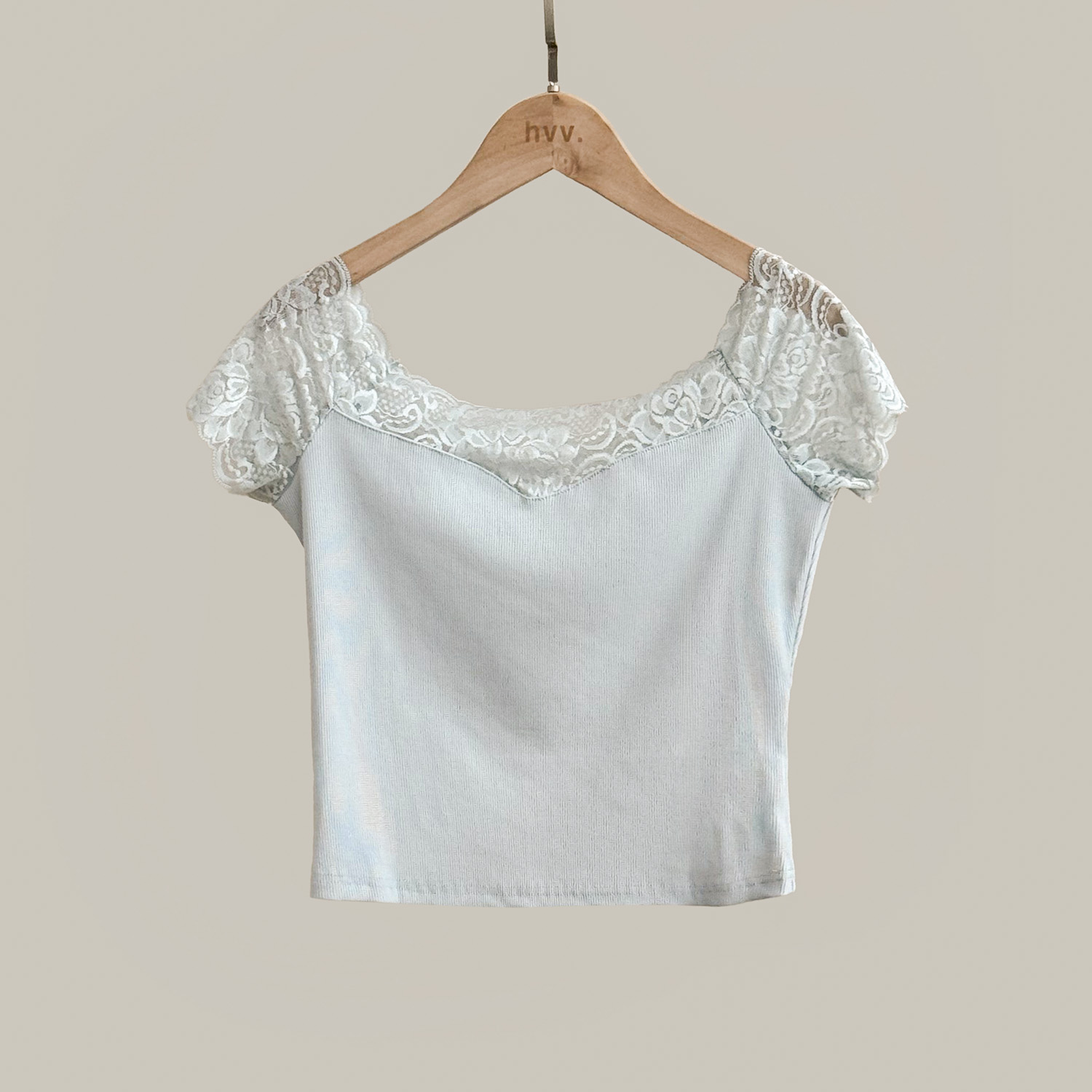Portrait Lace Top - Light Blue