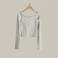 Reve Striped Off-Shoulder Top - Pale Grey