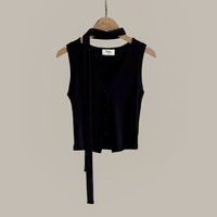 V-neck sleeveless vest top with sash