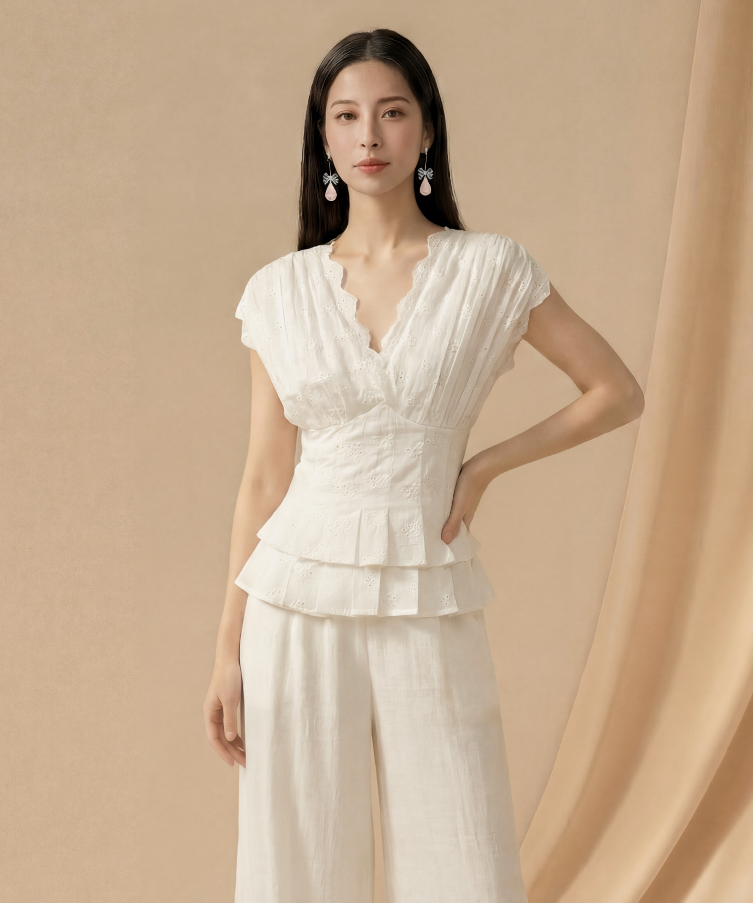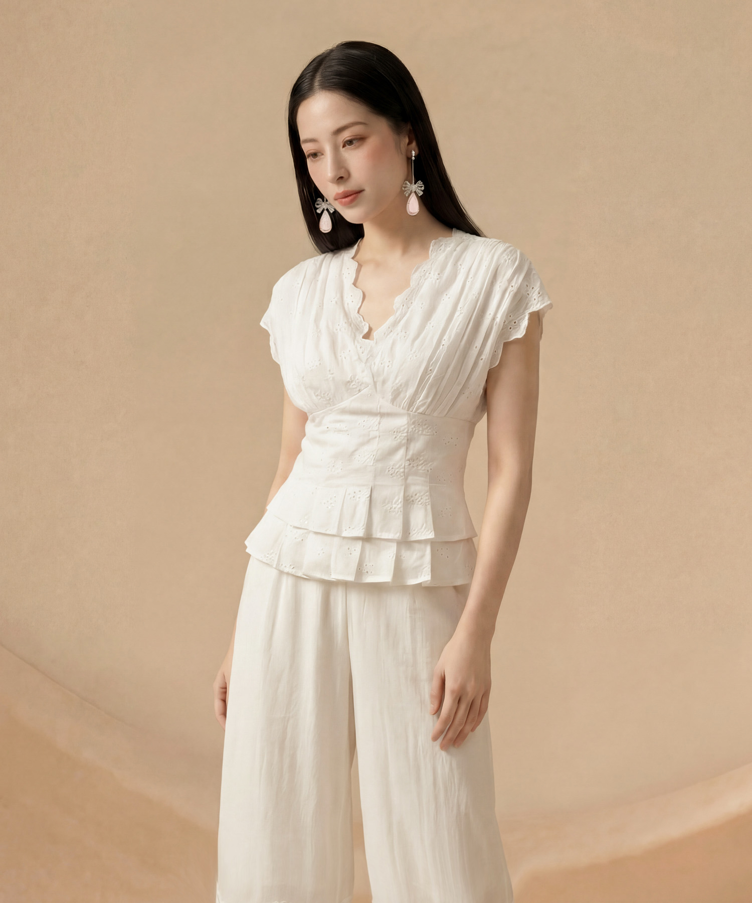Eyelet top with pleated details