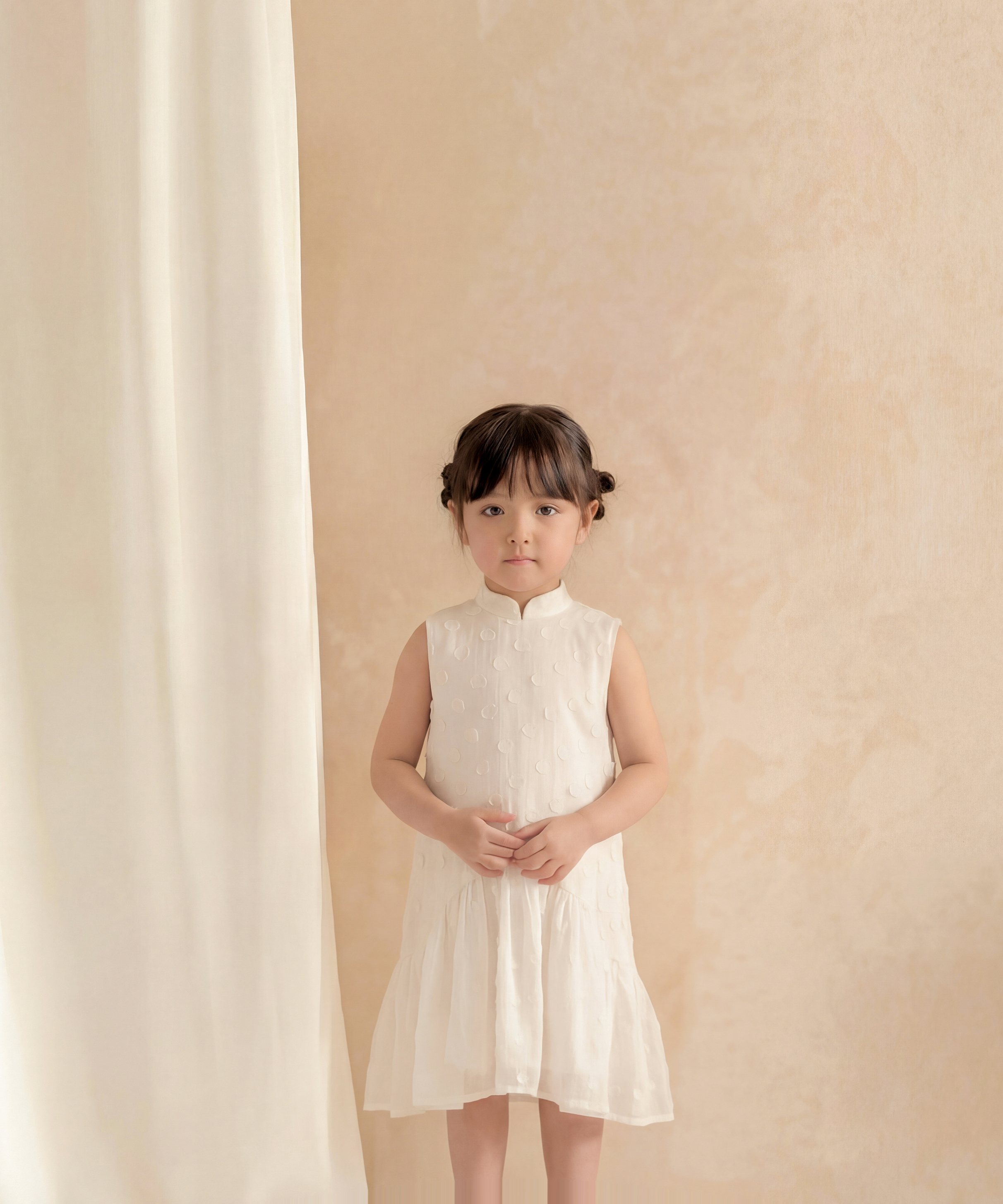 Kids sleeveless A-line cheongsam with large swiss dots