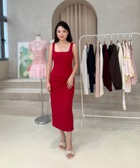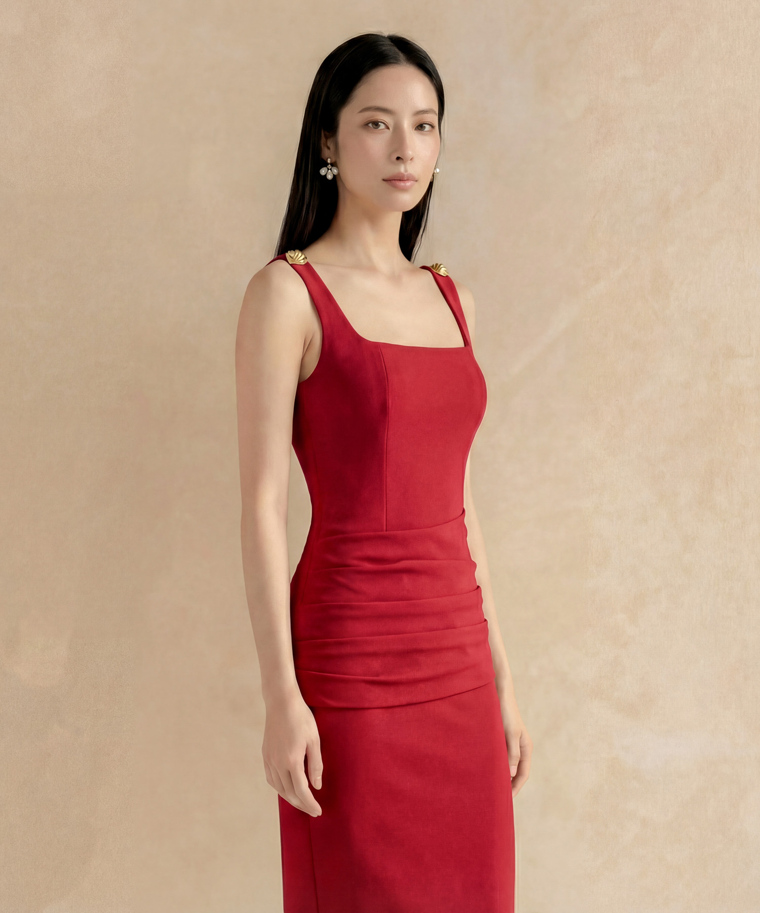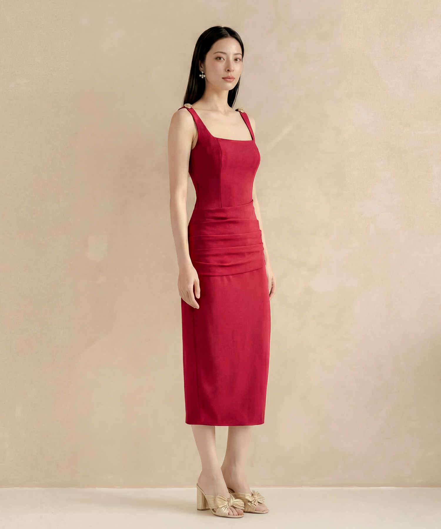[HVVCNY2026] Solange Buckle Ruched Midi - Cherry